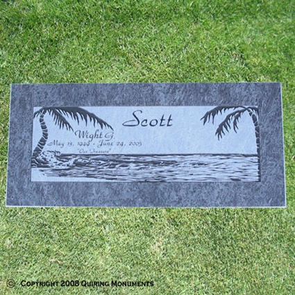 0.00ITEM #: WCF 029This headstone features a custom carving of a peaceful and idyllic island scene.